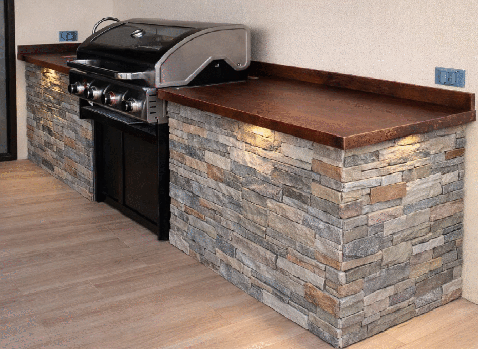 - Resistencia térmica insuperable: Son los materiales ideales para cocinas activas y áreas de BBQ, ya que permiten apoyar ollas calientes o estar cerca del fuego sin sufrir quemaduras ni alteraciones.